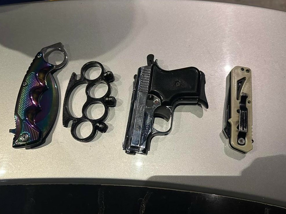 Gjatë kontrollimit të udhëtarëve, të cilët kanë qenë kryesisht me nxënës, në dyshemenë e autobusit janë gjetur : një armë zjarri, dy thika dhe një ‘’Box hekuri’’, të cilat nuk dihen se kujt i përkasin.