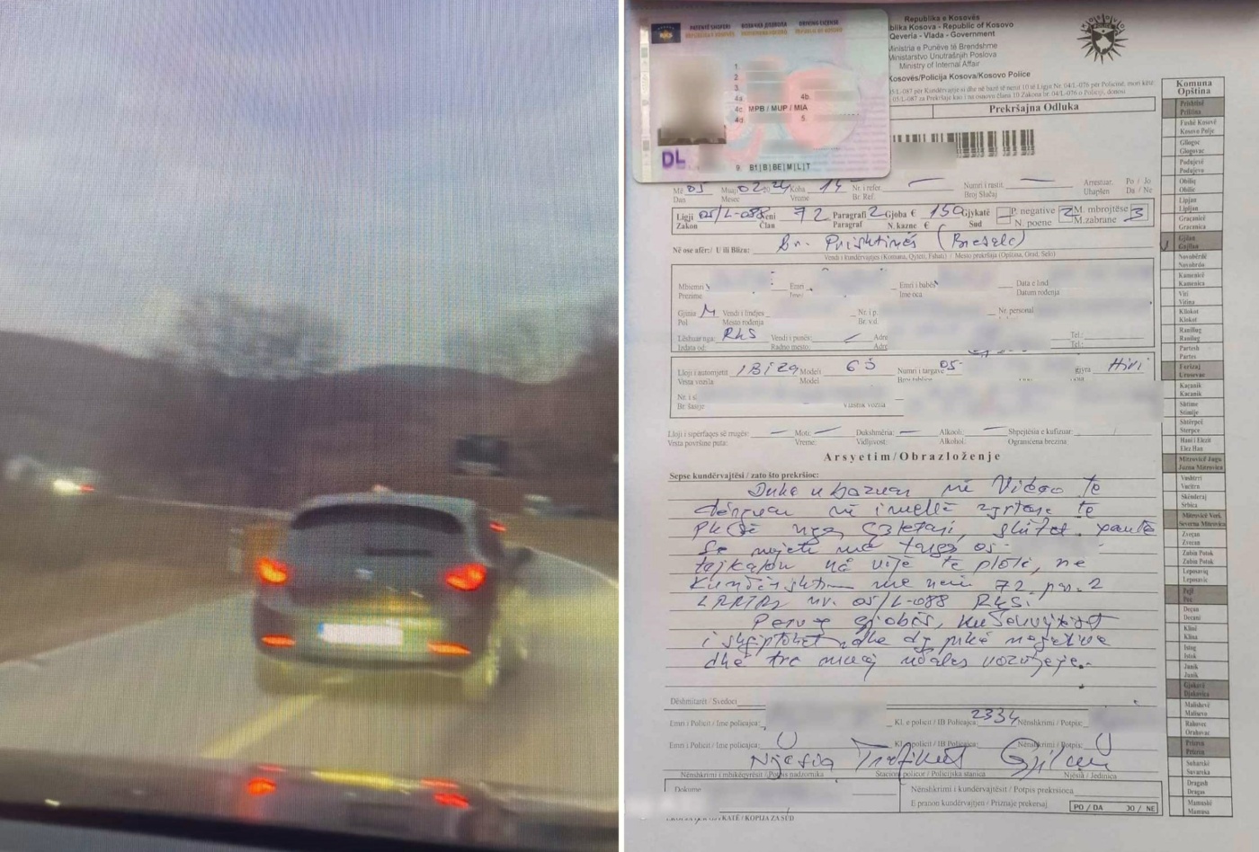 “Njësiti rajonale i trafikut rrugor Gjilan falë bashkëpunimit me qytetarë, kanë identifikuar një kundërvajtës i cili gjatë drejtimit të automjetit të tij në fshatin Bresalc, aksi rrugor Gjilan- Prishtinë në bazë të video incizimi të pranuar në E-mail adresën zyrtare, shihet duke bërë tejkalim në vijë të plotë, me të cilin veprim rrezikon pjesëmarrësit e tjerë në trafik dhe bie ndeshë me rregullat e komunikacionit rrugor.”, njofton policia.