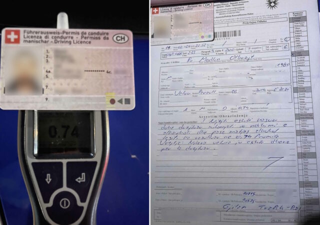 “Njësiti rajonal i trafikut rrugor Gjilan gjatë kontrollit në trafik në qytetin e Gjilan kanë ndalur për kontroll një automjet me vozitës mashkull kosovar shqiptar. Gjatë kontrollit është dyshuar se vozitësi i këtij automjeti mund të jetë nën ndikim të alkoolit. Pasi që i është bërë matja e alkoolit me alkool test ka rezultuar se ka qenë nën ndikim të alkoolit me 0.74.”, thuhet në njoftim.