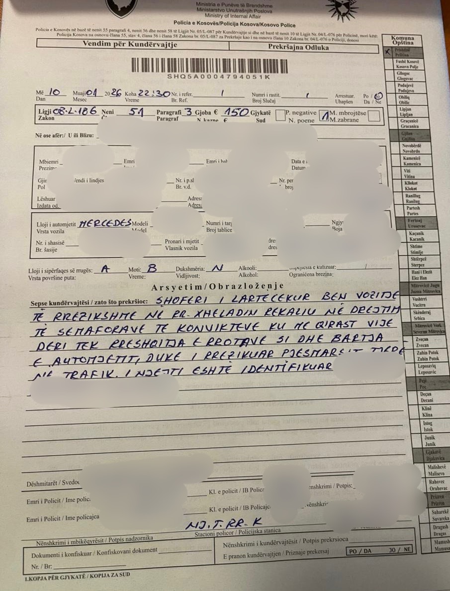 Njësia e Trafikut të Kryeqytetit ka identifikuar dhe gjobitur një shofer për shkak të vozitjes së rrezikshme në Prishtinë.
