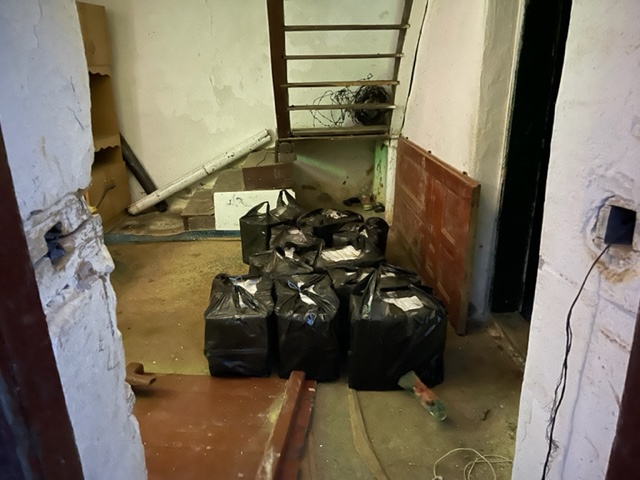 Pas konsultimeve me prokurorin kompetentë, është bastisur edhe shtëpia e pabanuar, me ç ‘rast në një nga hapësirat e saj, janë gjetur edhe një sasi e konsiderueshme e mallit të njëjtë – duhan i papërpunuar. Në total janë gjetur 34 thasë duhan ‘refuz ‘të papërpunuar mbi 500 (pesëqind) kilogramë dhe 94 (nëntëdhjetë e katër) paketime duhan (rreth 1 kg.) e që bën rreth 94 kg. në total .
