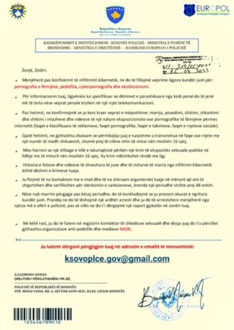 Policia e Kosovës si institucion i zbatimit të ligjit, në bashkëpunim dhe koordinim me organet e drejtësisë, pas sigurimit të informacioneve rreth qarkullimit të e-mailave/dokumentit të tillë, ka filluar hetimet intensive duke angazhuar njësitet kompetente policore, me qëllim të hetimit, verifikimit dhe zbulimit të kryerësve të kësaj vepre penale.
