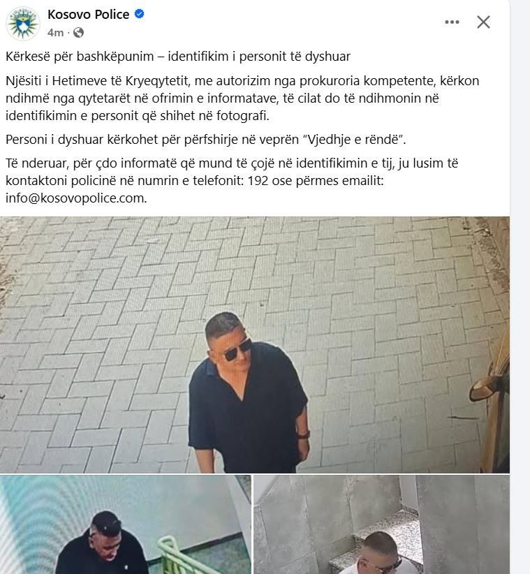 “Të nderuar, për çdo informatë që mund të çojë në identifikimin e tij, ju lusim të kontaktoni policinë në numrin 192 apo përmes emailit: [email protected]