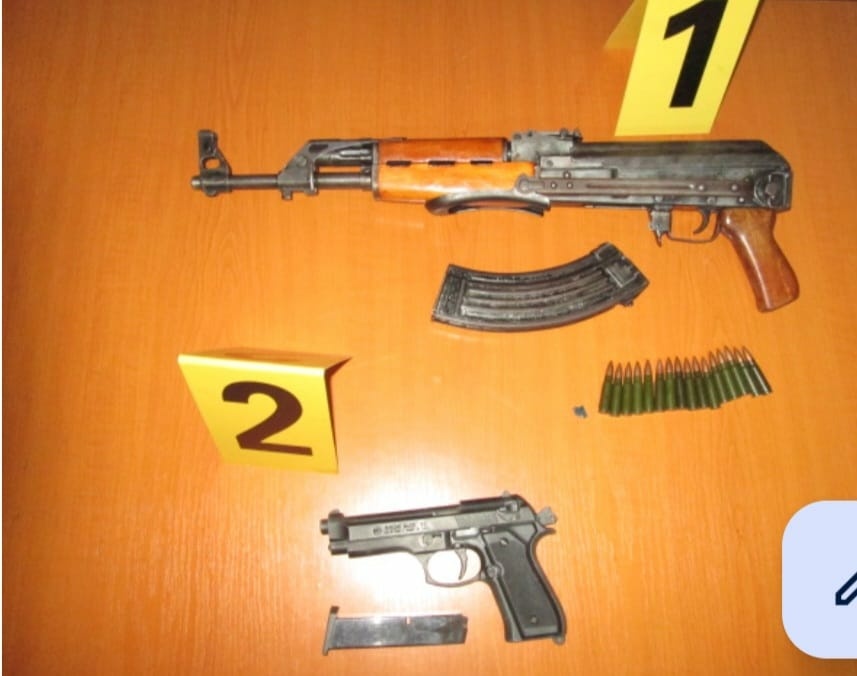 “Në orët e mbrëmjes së datës 21 qershor 2024, në Stacionin Policor Skenderaj, është raportuar se në fshatin Terrnafc janë dëgjuar të shtëna nga arma e zjarrit. Mbi bazën e informatës njësitet policore kanë ndërmarrë veprime policore me ç’ rast është identifikuar dhe arrestuar i dyshuari mashkull kosovar, pasi që gjatë kontrollit në veturën e tij fillimisht i janë gjetur pesë (5) fishekë, ndërsa më pas i është gjetur dhe konfiskuar arma pushkë automatike me gjashtëmbëdhjetë fishekë. Gjatë intervistimit, i dyshuari ka deklaruar se në shtëpi posedonte edhe një armë pistoletë me gaz të cilën e kanë konfiskuar”, thuhet në njoftimin nga policia.