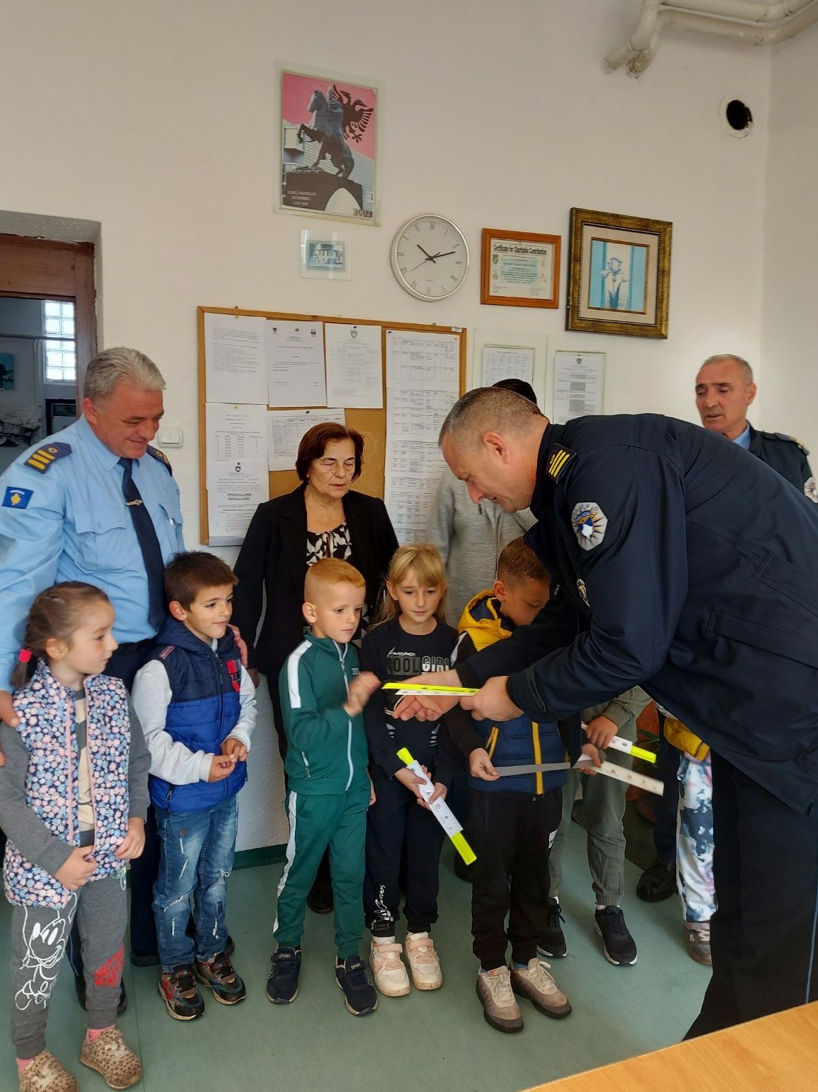 Me këtë rast për nxënësit janë shpërndarë rekuizita të ndryshme si: varëse për çanta, vizore dhe shirita vezullues që vendosen në krahë, po ashtu janë dhënë edhe disa mesazhe.