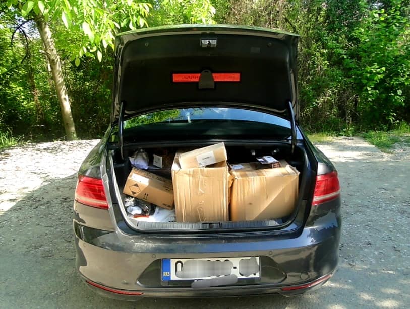Gjatë kontrollimit të veturës në hapësirën e brendshme dhe bagazhin e veturës është gjetur një sasi e konsiderueshme e mallrave komerciale që dyshohet se janë kontrabanduar nga territori i Maqedonisë së Veriut.