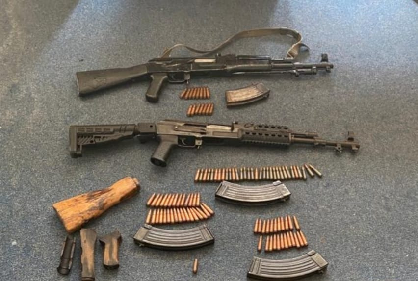 Siç bëhet e ditur në njoftiminn e policisë, thuhet se janë konfiskuar dy pushkë automatike, katër karikator, 100 copë fishekë dhe disa pjesë të ndryshme të armës,