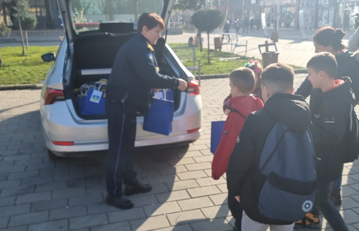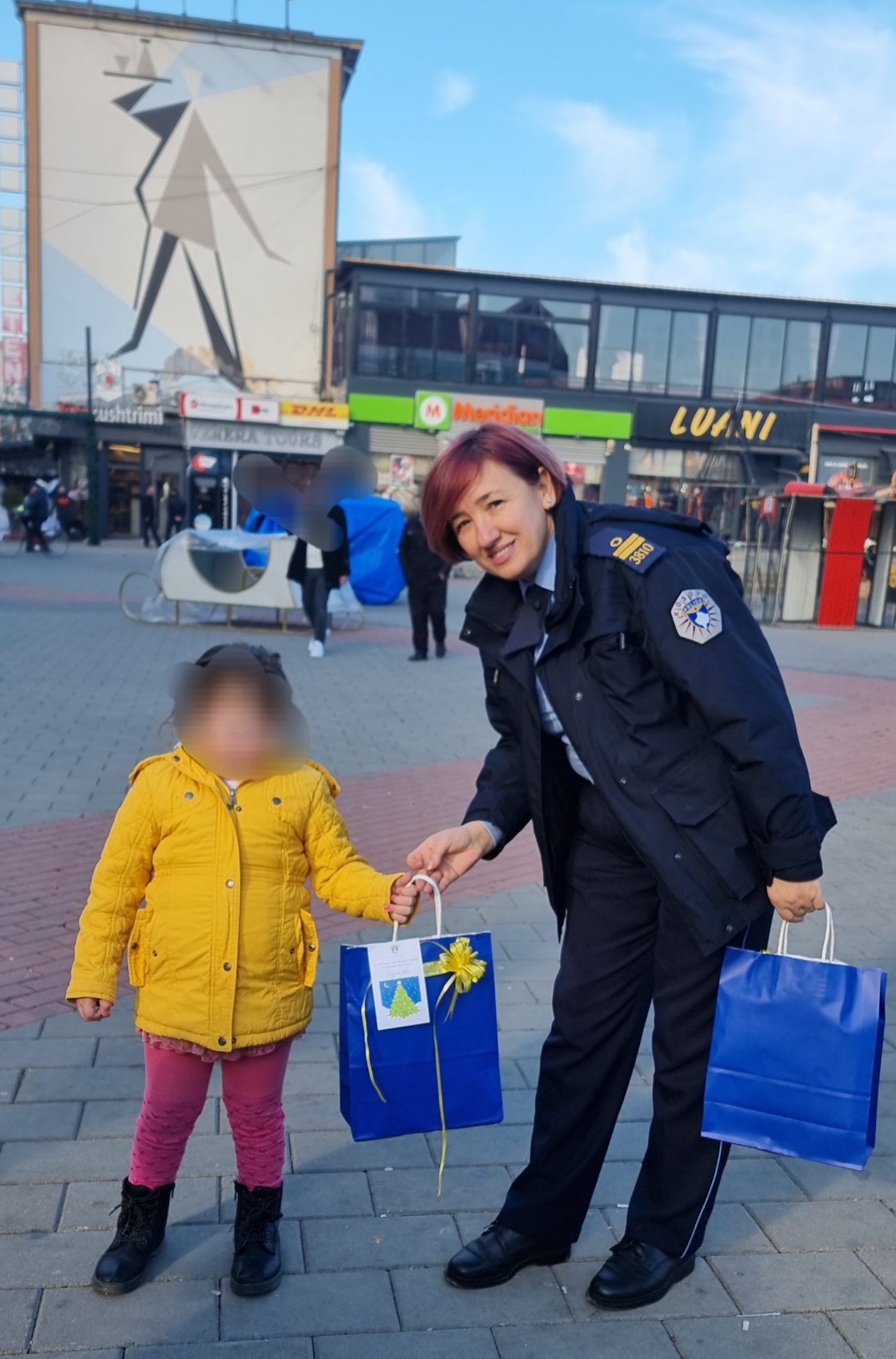 Policia, me rastin e festave të fund vitit në prani të mediave lokale u shpërndau dhurata fëmijëve të vegjël që i takoi në sheshin e qytetit.