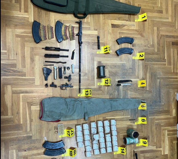 Megjithatë, gjatë kontrollit në ambientet përcjellëse të objektit, bazuar në nenin 108 të Kodit të Procedurës Penale, Policia ka gjetur dhe sekuestruar një sasi të konsiderueshme të armëve dhe municionit. Mes dëshmive të sekuestruara janë: