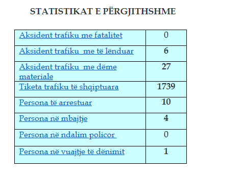 Gjatë kësaj periudhe janë raportuar 27 aksidente me dëme materiale dhe 6 me të lënduar, shkruan Arbresh.info.