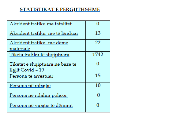 Sipas raportit të policisë, gjatë 24 orëve të fundit janë evidentuar disa aksidente në trafikun rrugor, 13 aksidente kanë qenë me lëndime dhe 22 me dëme materiale, shkruan Arbresh.info.