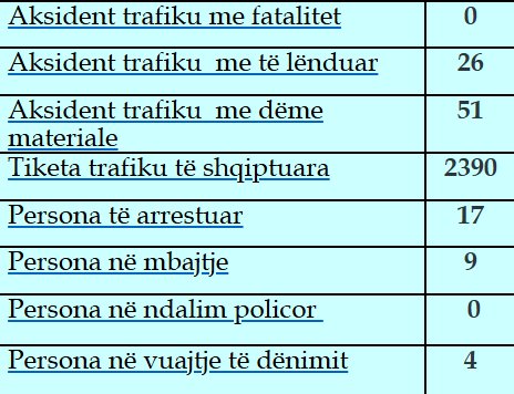 Sipas raportit të policisë, gjatë 24 orëve të fundit janë evidentuar disa aksidente në trafikun rrugor, 26 aksidente kanë qenë me lëndime dhe 51 me dëme materiale.