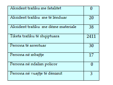 Gjatë kësaj periudhe kanë ndodhur 38 aksidente me dëme materiale, ndërsa 30 persona janë arrestuar./Arbresh.info/