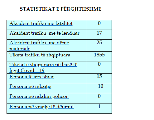 Policia bën të ditur se gjatë 24 orëve të fundit janë evidentuar disa aksidente në trafikun rrugor, 17 aksidente kanë qenë me lëndime e 25 me dëme materiale, shkruan Arbresh.info.
