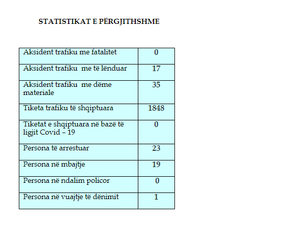 Sipas raportit të policisë, gjatë 24 orëve të fundit janë evidentuar disa aksidente në trafikun rrugor, 17 aksidente kanë qenë me lëndime, ndërsa 35 me dëme materiale.
