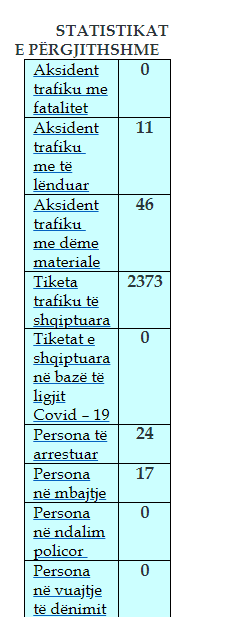 Në këtë periudhë kohore kanë ndodhur 46 aksidente me dëme materiale dhe 11 me të lënduar, shkruan Arbresh.info.