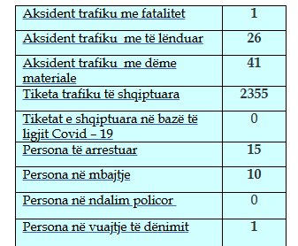 Gjatë kësaj kohë, policia ka njoftuar se kanë ndodhur 41 aksidente me dëme materiale.