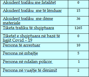 Në raportin 24 orësh, thuhet se brenda 24 orëve kanë ndodhur 36 aksidente trafiku me dëme materiale dhe 25 aksidente trafiku me të lënduar.