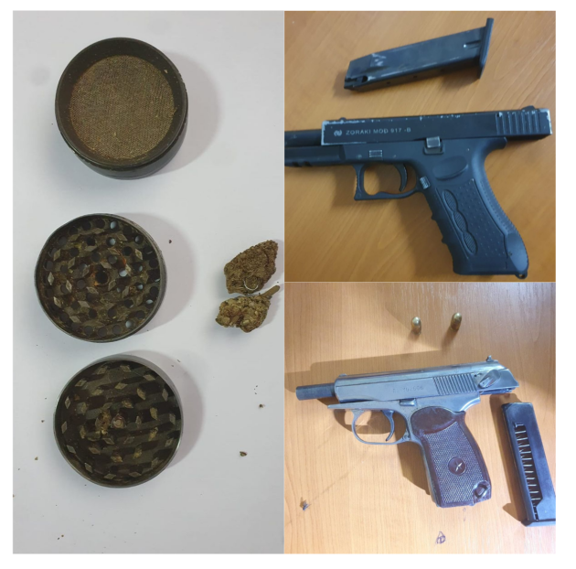 “Me datën 06.09.2023, njësitet patrulluese në kuadër të Stacionit Policor në Gjakovë ju kanë përgjigjur një rasti kanosje të raportuar në rrugën ‘Sylejman Hadum Aga’ në Gjakovë. Zyrtarë Policorë në kuadër të këtij stacioni, kanë arritur të identifikojnë dhe të arrestojnë dy të dyshuar, meshkuj kosovarë të moshës madhore. Tek njëri nga të dyshuarit janë gjetur dhe konfiskuar dy pistoleta të cilat dyshohet se janë përdorur në rast. Po ashtu tek i njëjti është gjetur dhe konfiskuar një sasi e dyshuar narkotike e llojit marihuanë”, thuhet në njoftim.