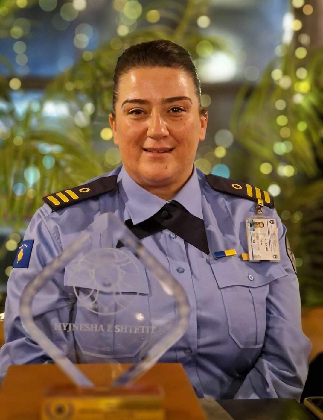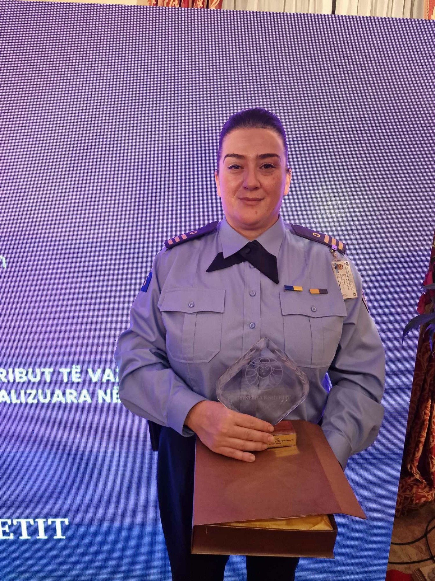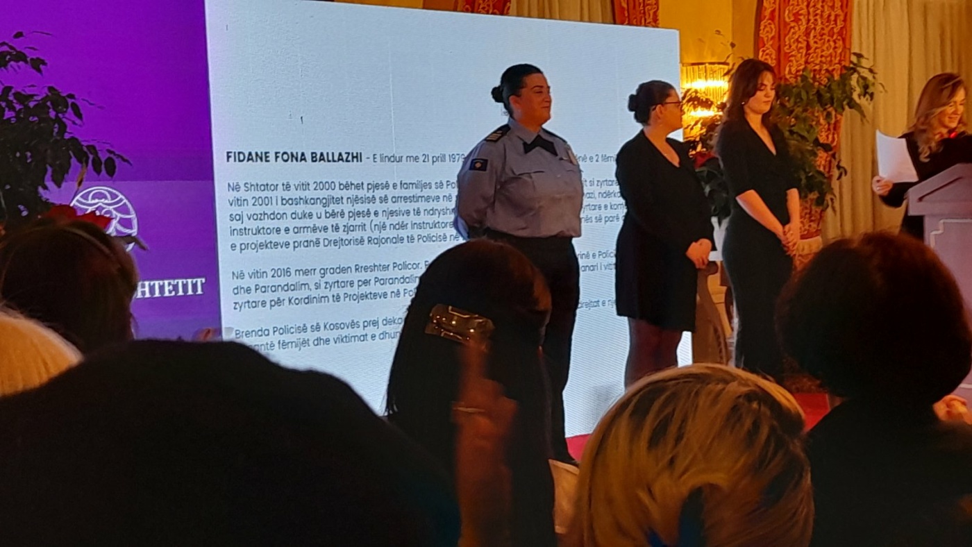 “Në mesin e shumë grave të zonja dhe heroina, me trofeun “Hyjnesha e shtetit” u nderua edhe rreshter Fidane Ballazhi nga Policia e Kosovës. Rreshter Fidane Ballazhi është shembull i nivelit të lartë profesional për Policinë e Kosovës që si grua, nënë dhe police me mund, sakrificë dhe përkushtim dëshmoi se çdo sukses dhe gjithçka është e mundur me punë me përgjegjësi dhe dashuri në shërbim të qytetarëve të Republikës së Kosovës”, thuhet në njoftim./Arbresh.info/