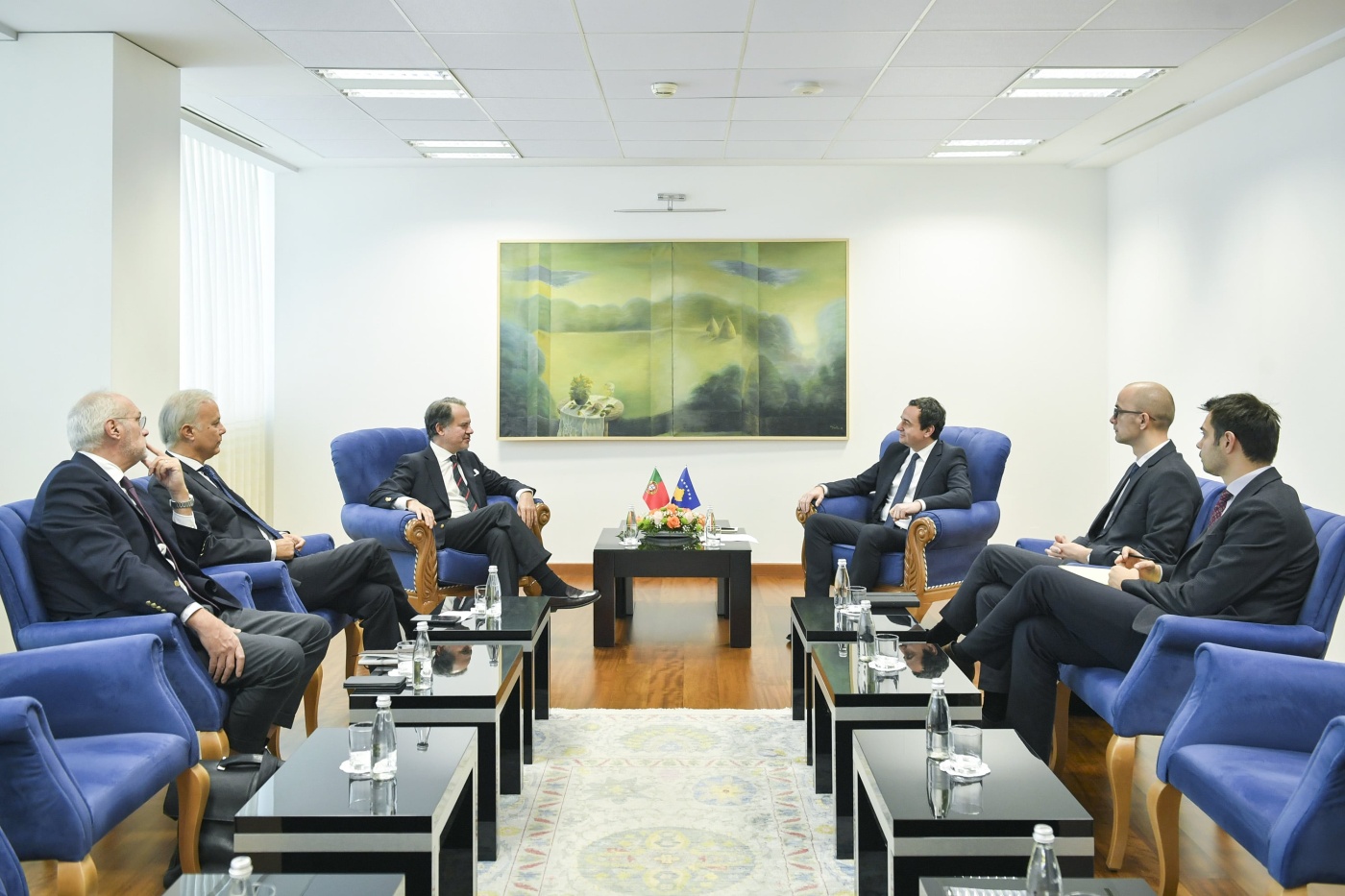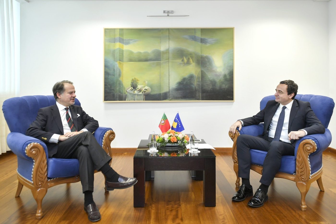 Kryeministri i Republikës së Kosovës, Albin Kurti prit në zyrën e tij delegacionin parlamentar nga Portugalia të përbërë nga Kryetari i Komisionit Parlamentar për Politikë të Jashtme, deputeti Sergio Sousa Pinto, Koordinatori Politik i Partisë Socialdemokrate dhe anëtar i Komisionit për Politikë të Jashtme, deputeti Tiago Moreira de Sa dhe këshilltari i Kryetarit të Komisionit për Punë të Jashtme, Raul Oliveira. Ata po qëndrojnë në Kosovë për një vizitë zyrtare.