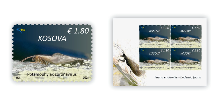 “Potamophylax coronavirus i prezantuar në pullë postare është lloj endemik i Kosovës nga grupi i insekteve të ujërave. Lloji është zbuluar në vitin 2021 nga zona burimore e Lumëbardhit të Deçanit.Zona ku është gjetur ky lloj insekti i rrallë është degraduar jashtëzakonisht shumë nga faktori njeri, duke e rrezikuar zhdukjen e llojit unik të këtij insekti në vendin tonë nga ndotjet e mjediseve ujore”, thuhet në njoftim.