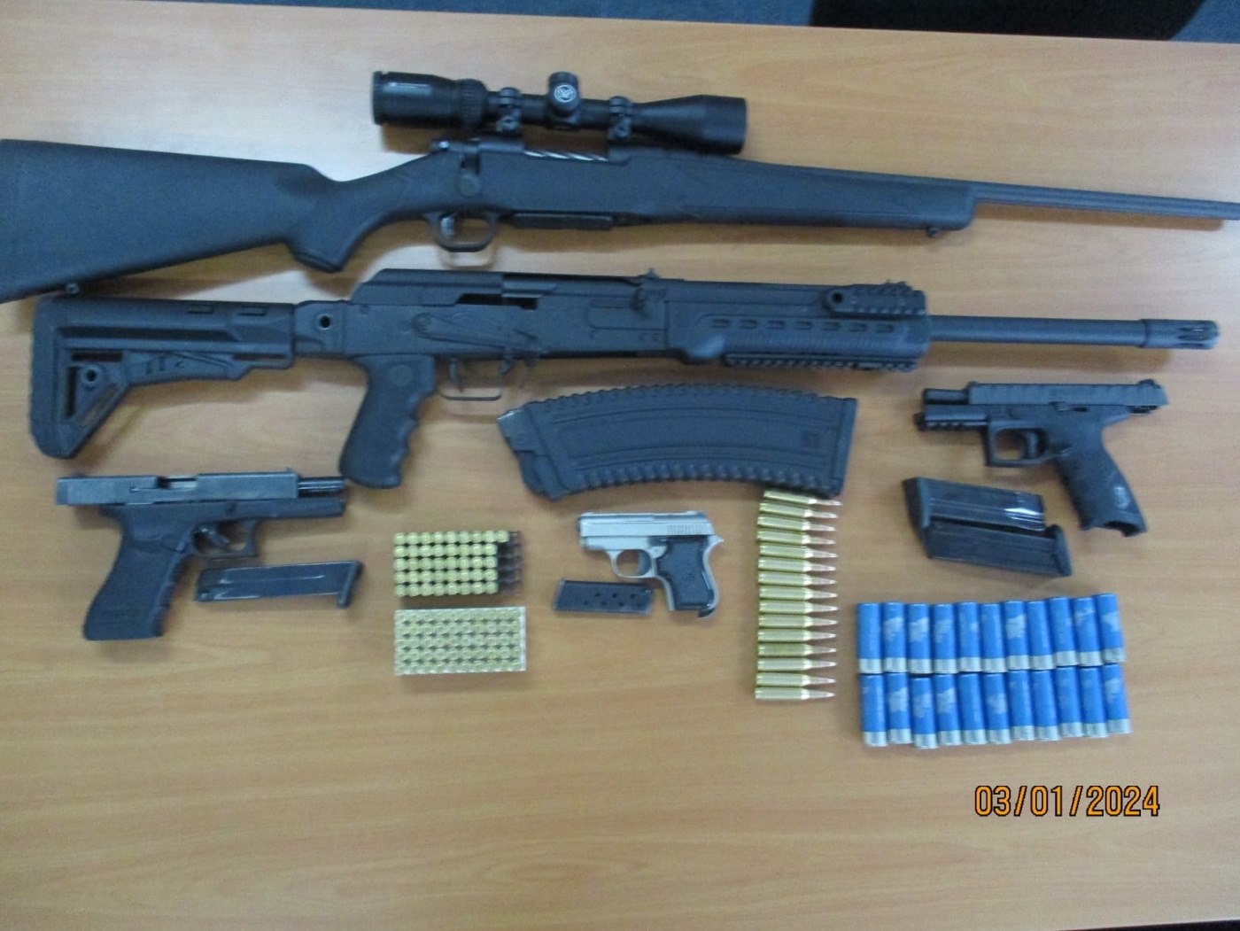 “Sot me datën 03.01.2024 është realizuar kontroll në vendbanimin e të dyshuarve në fshatin Carrallukë-Malishevë ku janë gjetur: Dy (2) armë zjarri të gjata, Tri (3) armë zjarri të shkurtra (pistoleta) dhe Njëqind e njëzet e tetë (128) fishekë”, thuhet në njoftimin e policisë.