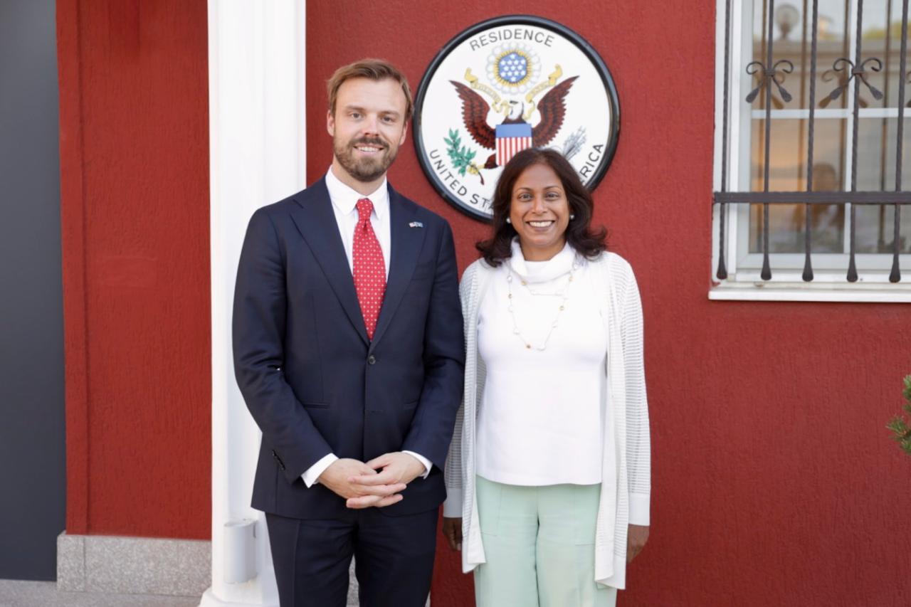 E ngarkuara me punë në Ambasadën e SHBA-së në Kosovë, Anu Prattipati, priti sot në ambientet e Ambasadës zyrtarin e lartë të Byrosë për Çështje Evropiane dhe Euroaziatike në Departamentin e Shtetit, Brendan Hanrahan.