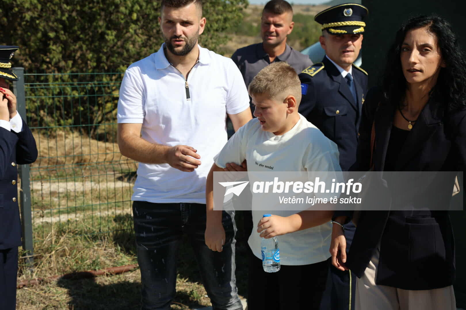 Në mesin e shumw qytetarëve dhe përfaqësuesve institucionalë që bënë homazhe pranë varrit të heroit, një moment prekës ishte kur djali i tij i vogël, u përlotë duke prekur zemrat e të gjithë të pranishmëve./Arbresh.info