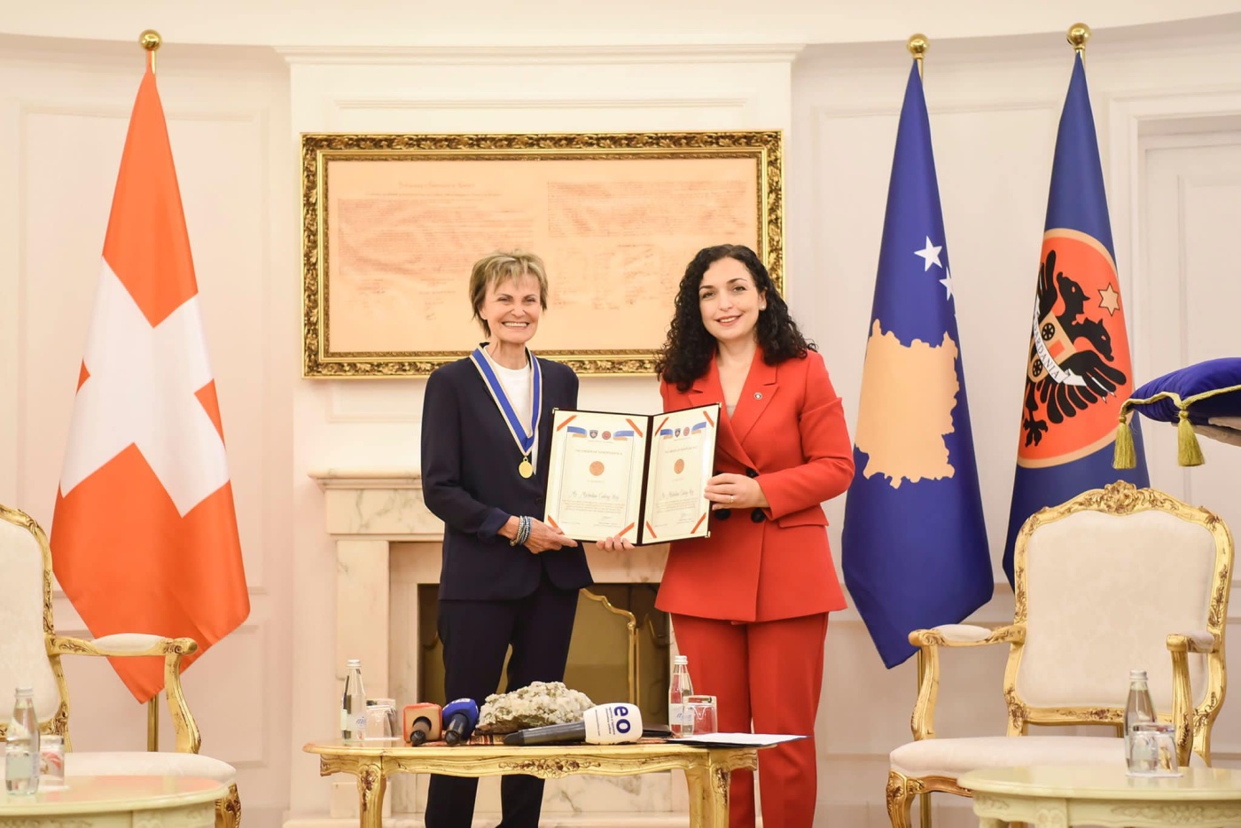 Presidentja e Kosovës, Vjosa Osmani e ka dekoruar me Urdhrin e Pavarësisë Micheline Calmy-Rey, ish-presidenten e Konfederatës Zvicerane.