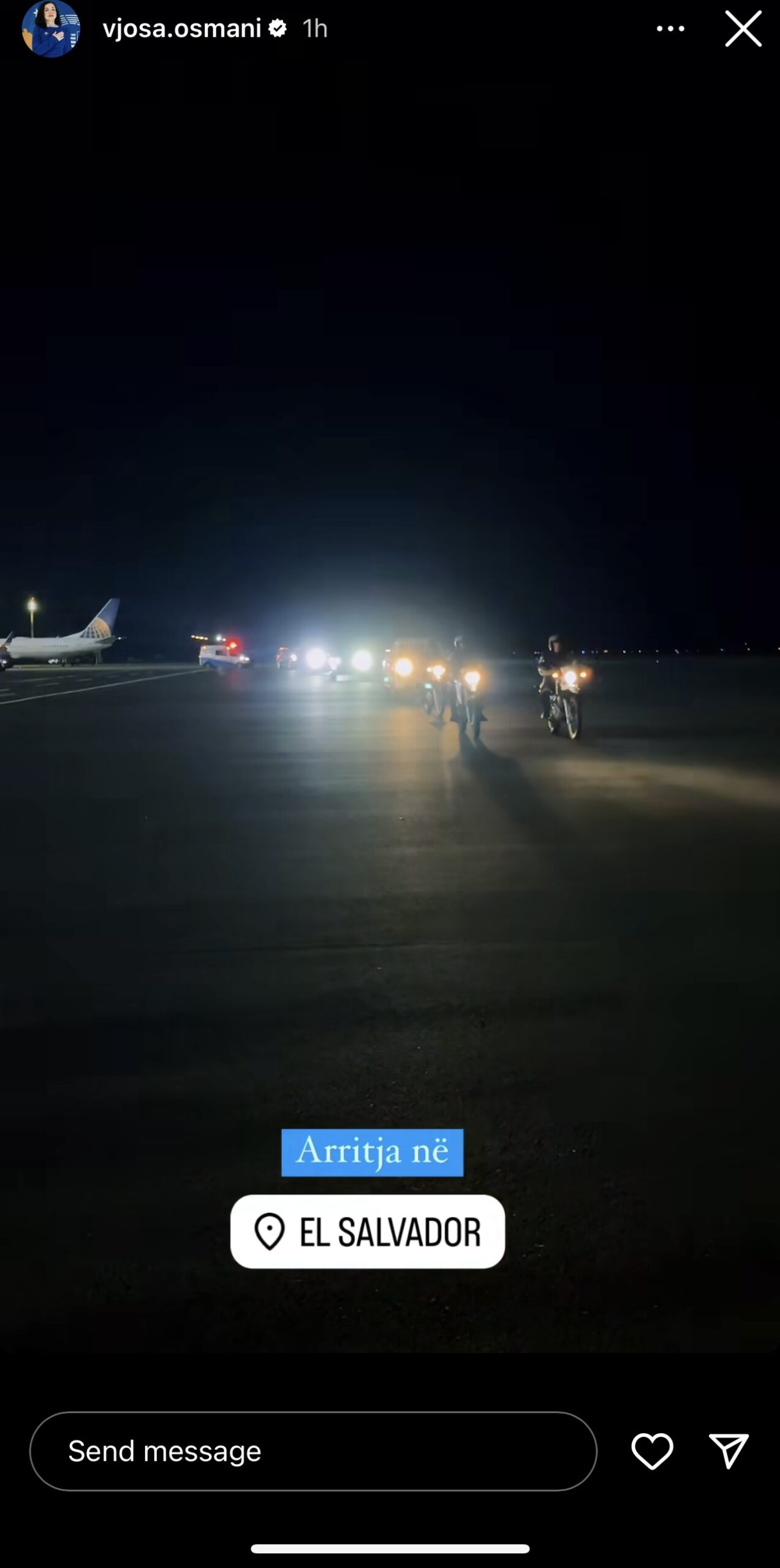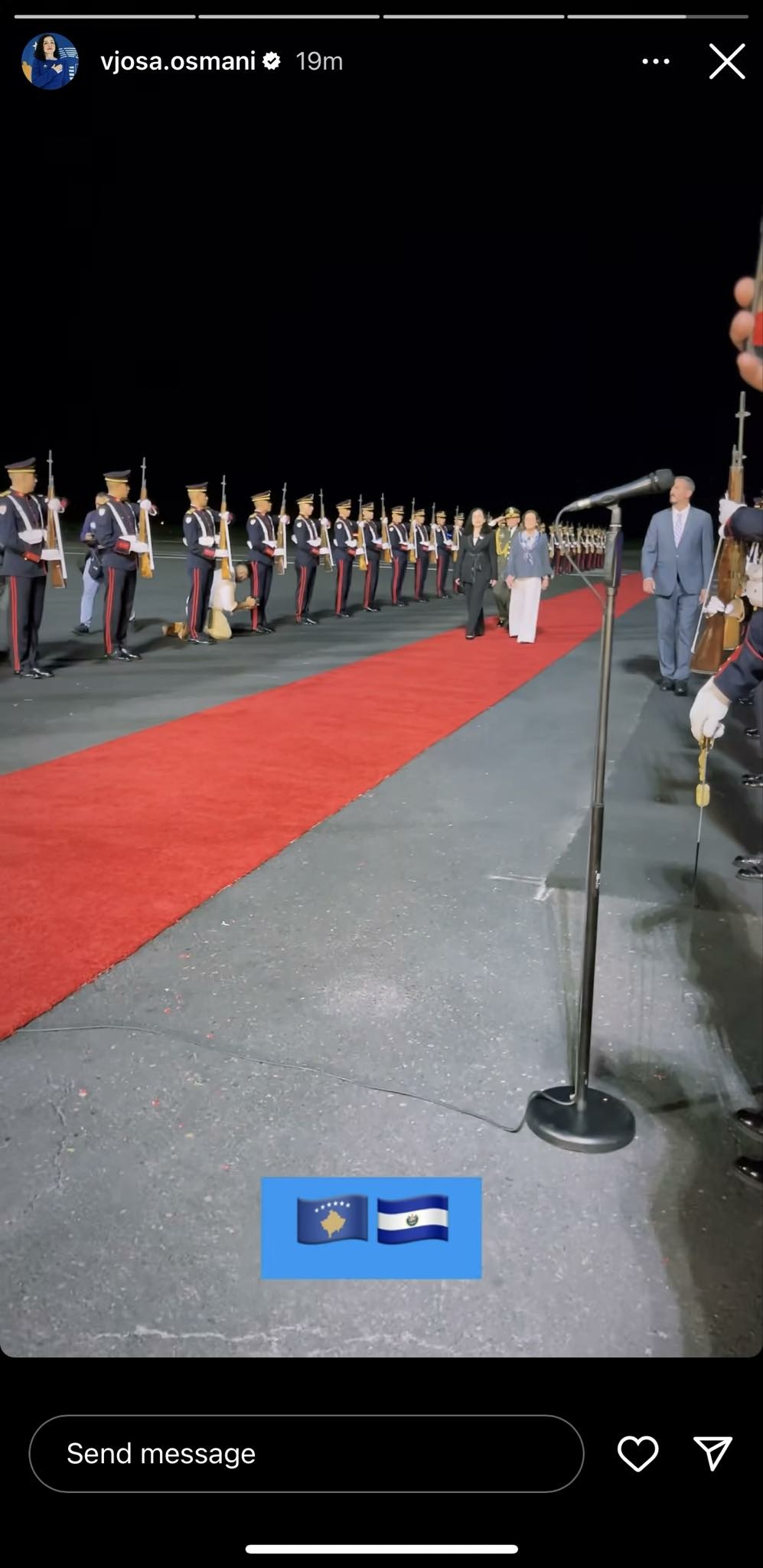 Nëpërmjet disa videove të postuara në Instagram, Osmani bëri të ditur se është pritur nga ministrja e Jashtme e El Salvadorit, Alexandra Hill Tinoco.