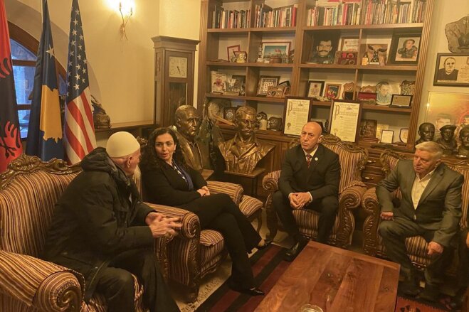 Pas homazheve ajo qëndroi edhe Kullën e Haradinajve ku u prit nga kryetari i Aleancës për Ardhmërinë e Kosovës dhe ish-komandanti i Zonës Operative të Dukagjinit, Ramush Haradinaj. Në kullë ndodheshin edhe Rifat Jashari e Bekim Jashari e shumë familjarë të dëshmorëve, por edhe bashkëluftetarë.