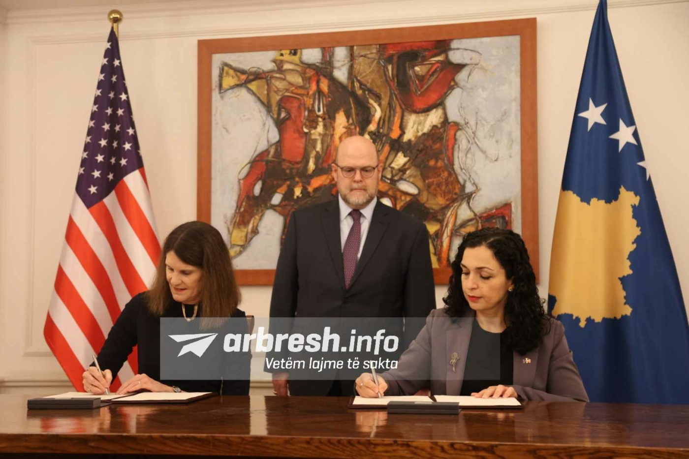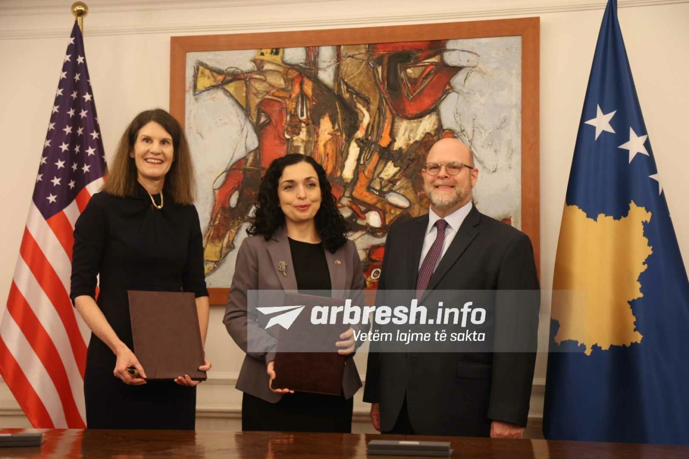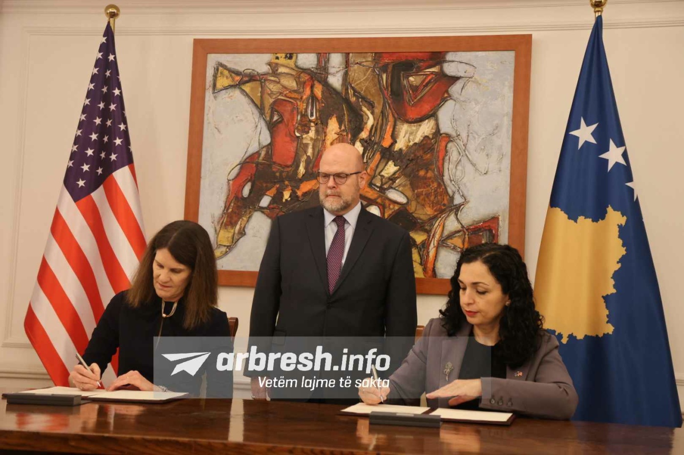 Presidentja e Republikës së Kosovës, Vjosa Osmani dhe ushtruesja e detyrës së drejtoreshës në USAID, Kerry Monaghan Hogler, kanë nënshkruar marrëveshjen e grantit për objektivat zhvillimore, në vlerë prej 34 milion e 727 mijë dollarë.
