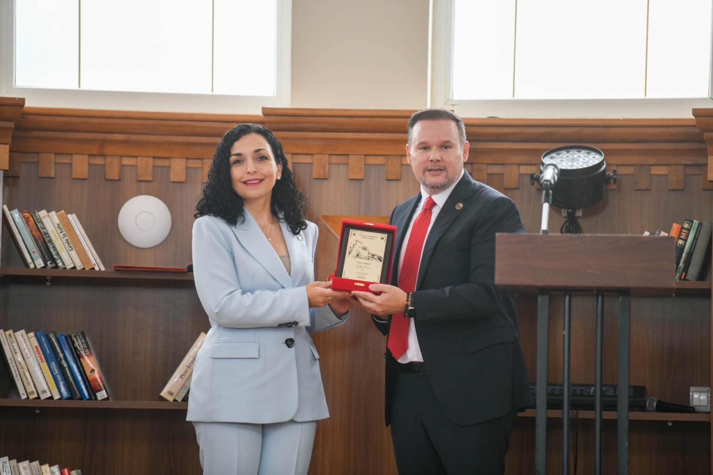 “Zhvilluam sot një ceremoni të posaçme, ku pata nderin t’i akordoja Presidentes së Kosovës Znj. @vjosa.osmani Titullin e Nderit ‘’Patron i Kalasë’’, titull ekskluziv i cili jepet nga Kryetari i Bashkisë për personalitete të larta që vizitojnë qytetin dhe për të vlerësuar Presidenten si Mbrojtësen e Kalasë sonë, e cila për 2500 vjet është dëshmimtare e historisë sonë Shqiptare”, ka shkruar Demon ë Facebook.
