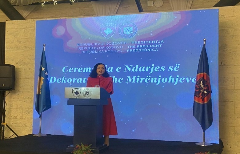 Presidentja e Kosovës, Vjosa Osmani në një ceremoni solemne në prag të ndërrimit të mot-moteve ka ndarë dekorata dhe medalje të meritave për personalitete të shquara dhe institucione të rëndësishme nga Kosova, Shqipëria, Maqedonia e Veriut, Mali i Zi dhe Arbreshët.