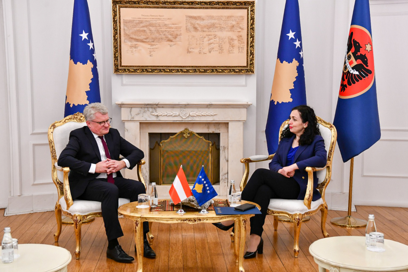 Presidentja Osmani theksoi përkrahjen e vazhdueshme të Austrisë ndaj Kosovës, qoftë gjatë vitet ’90, kur i njohu diplomat e Kosovës dhe ndihmoi në formimin e gjeneratave të tëra, qoftë pas luftës së Kosovës, kur ndihmoi në rindërtimin dhe zhvillimin e saj.