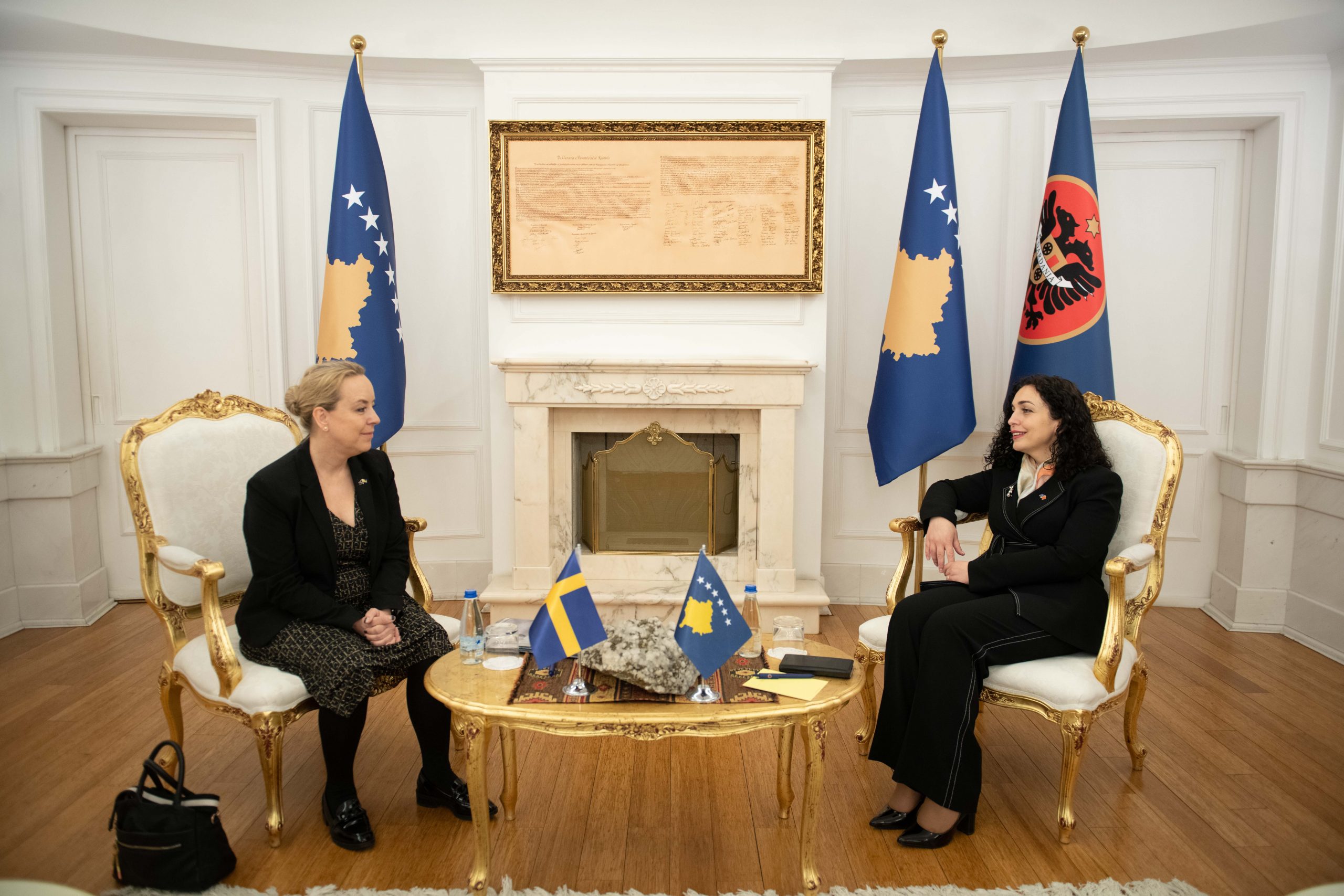 Presidentja e Republikës së Kosovës, Vjosa Osmani-Sadriu e ka pritur në takim ambasadoren e Mbretërisë së Suedisë, Karin Hernmarck për të diskutuar zhvillimet politike dhe të sigurisë në rajon dhe bashkëpunim në avancimin e agjendës së grave, paqes dhe sigurisë, përcjell arbresh.info.