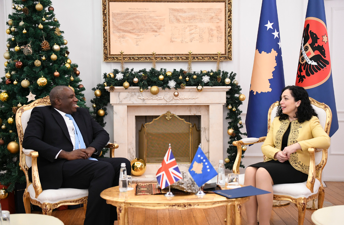Presidentja e Republikës së Kosovës, Vjosa Osmani ka pritur sot në takim deputetin David Lammy, njëherësh sekretar i Jashtëm nën hije i Partisë Laburiste në Mbretërinë Bashkuar.