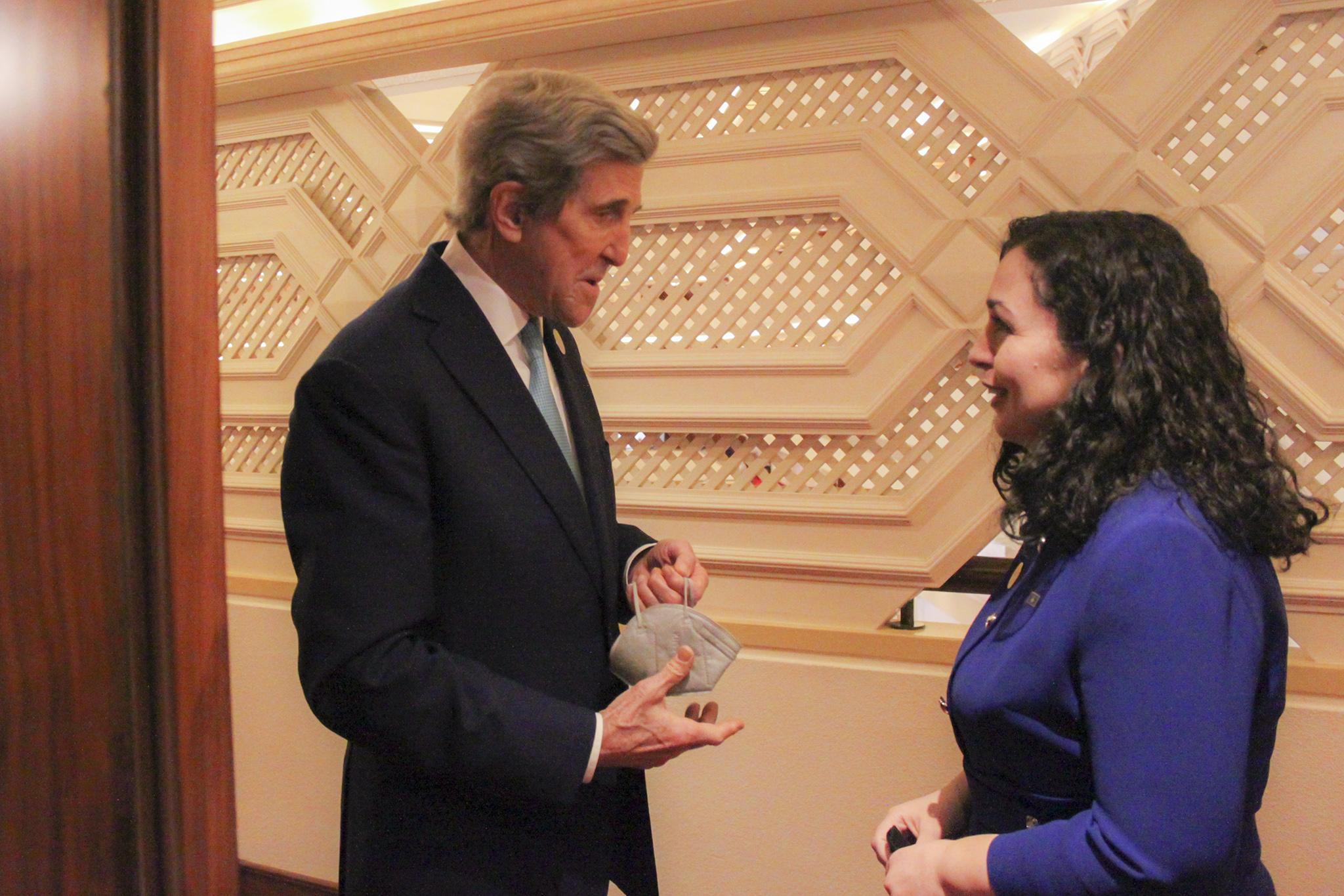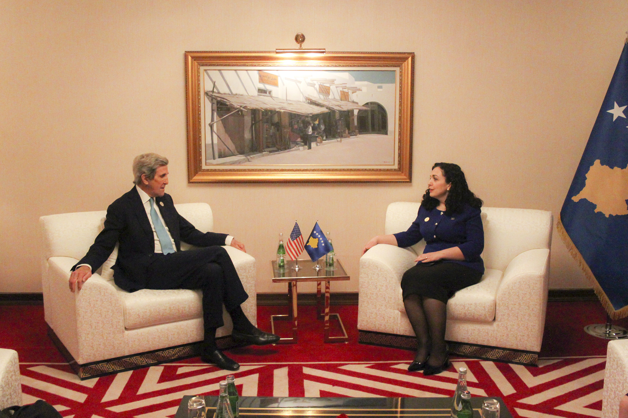 Presidentja e Republikës së Kosovës, Vjosa Osmani Sadriu është takuar me të Dërguarin e Posaçëm Presidencial i Shteteve të Bashkuara për çështje klimatike dhe ish Sekretar i Shtetit John Kerry. Në takim mori pjesë edhe Zëvendëskryeministrja dhe Ministrja e Punëve të Jashtme dhe Diasporës, Donika Gervalla Schwarz.