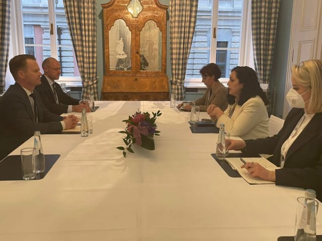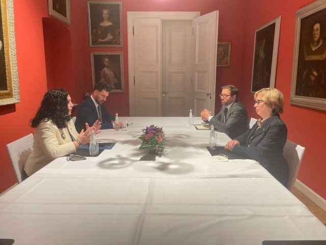 Në margjina të Konferencës për Siguri në Mynih, në takime të ndara, Presidentja e Republikës së Kosovës Vjosa Osmani ka vazhduar takimet e saj, këtë herë me ministrin e Jashtëm të Danimarkës Jeppe Kofod, sekretarin e shtetit të Vatikanit për marrëdhënie me shtetet Paul Richard Gallager, dhe drejtoren e Europolit Catherine de Bolle.