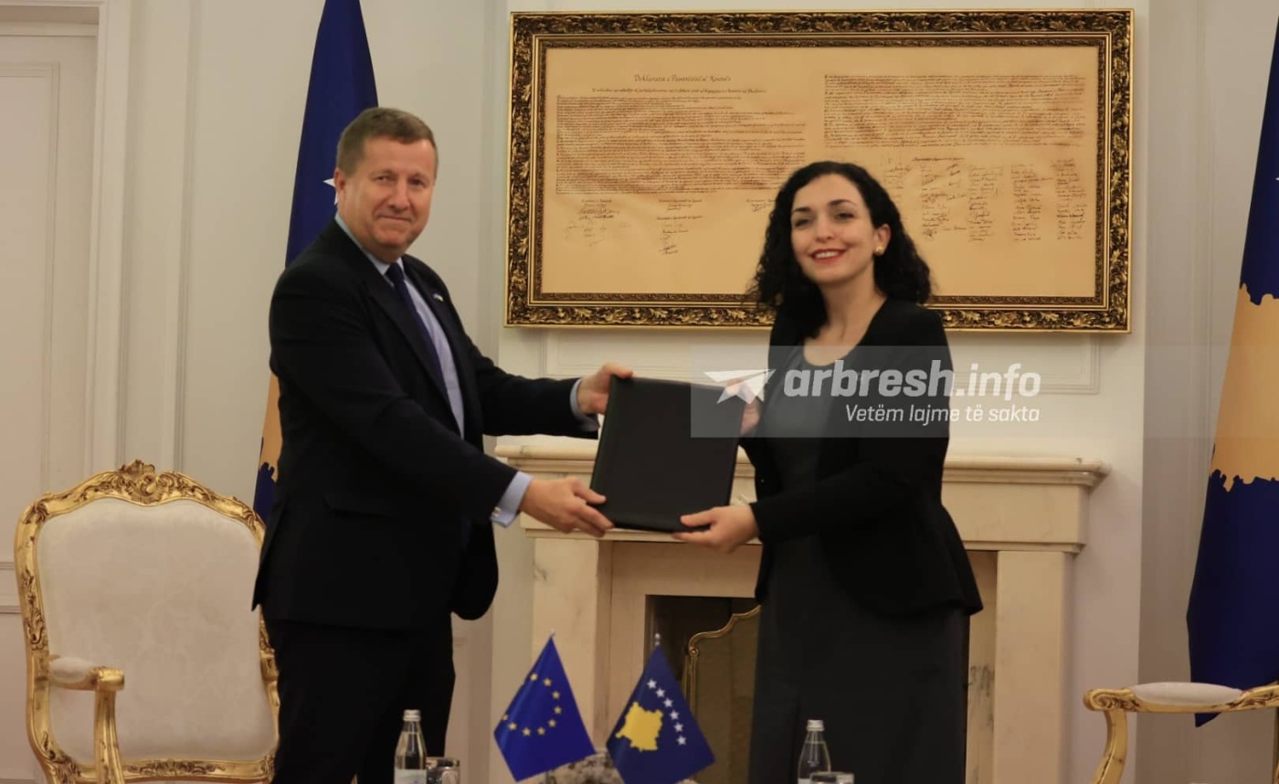 Presidentja këtë raport e pranoi nga Ambasadori i Bashkimit Evropian, Tomas Szunyog në Presidencë. /arbresh.info/