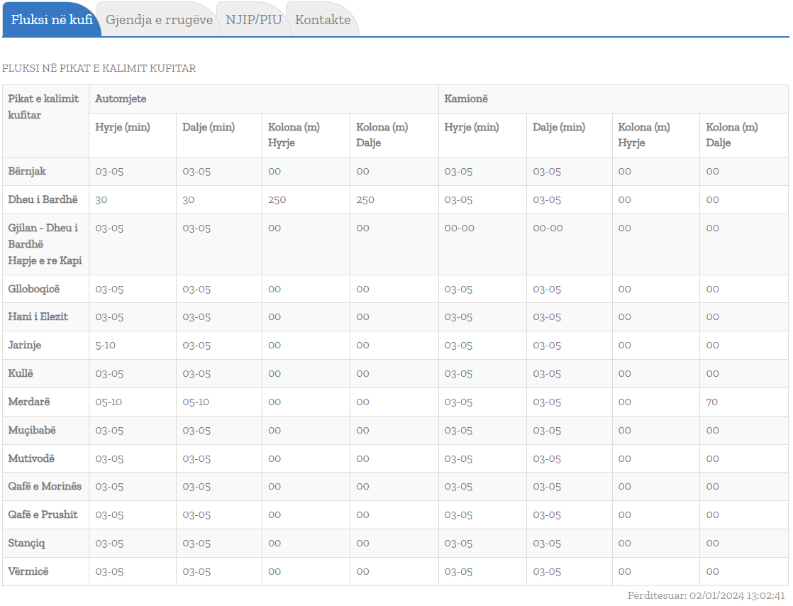 Sipas të dhënave, deri në 30 minuta po zgjasin pritet tek kjo pikë kufitare si në hyrje ashtu edhe në dalje nga Kosova, ndërsa kolona është e gjatë 250 metra.