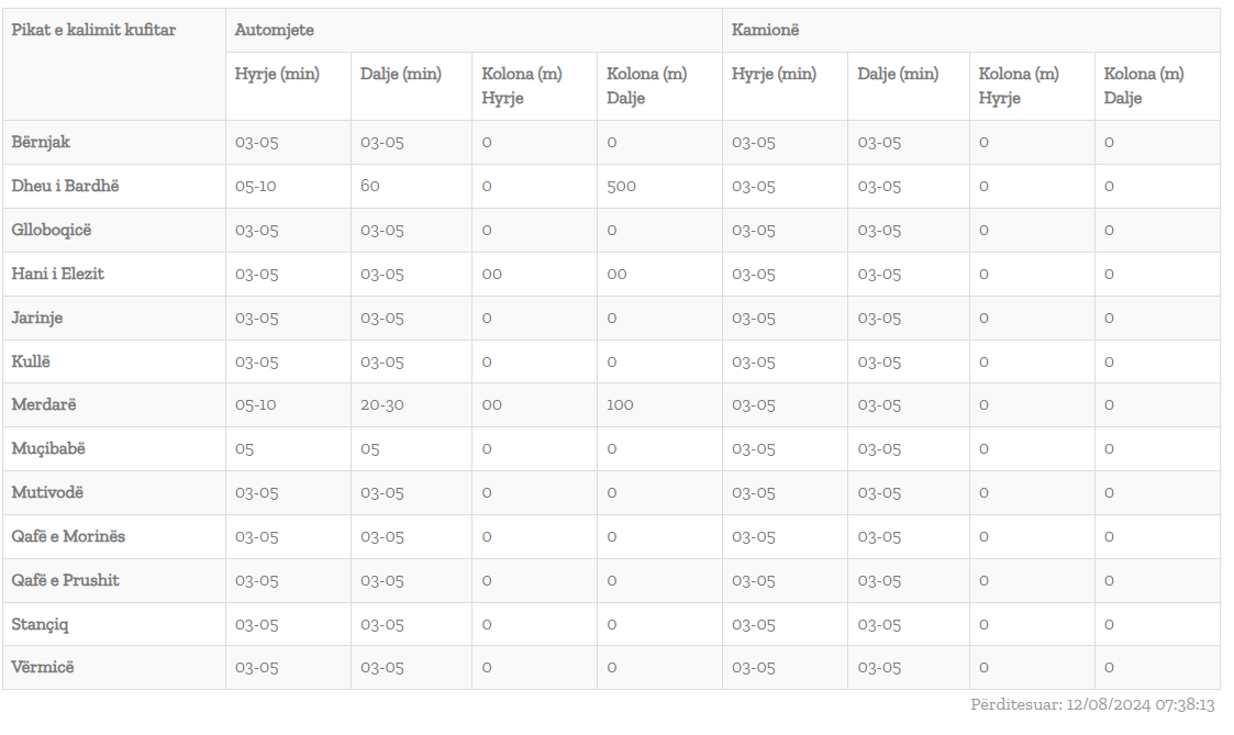Qendra Kombëtare për Menaxhim Kufitar ka përditësuar të dhënat mbi gjendjen aktuale në pikëkalimet kufitare për hyrje-dalje nga Kosova.