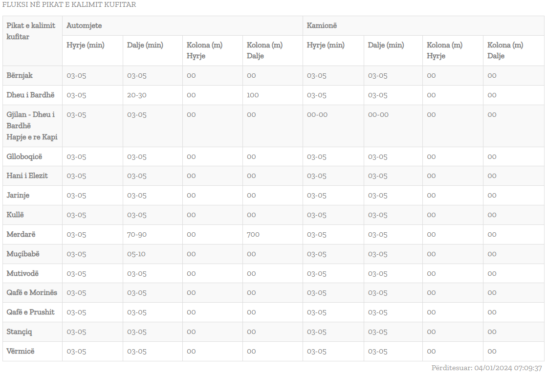 Qendra Kombëtare për Menaxhim Kufitar bënë të ditur se pritjet në pikat kufitare për të dal nga Kosova arrijnë deri në 1 orë e 30 minuta, shkruan Arbresh.info.