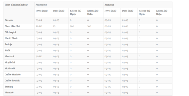 Sipas Qendrës Kombëtare për Menaxhimin Kufitar, kolona mëngjesin e sotëm ka në Merdarë deri në 1 orë, ndërsa tek Dheu i Bardhë deri në 25 minuta.