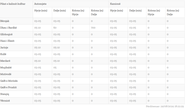 Në pikat tjera kufitare pritjet për dalje zgjasin pesë minuta.