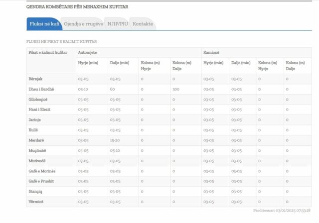 Qendra Kombëtare për Menaxhimin Kufitar ka bërë të ditur se pritjet më të mëdha këtë mëngjes janë tek Dheu i Bardhë deri në një orë, ndërsa pritjet në hyrje janë deri në pesë minuta.