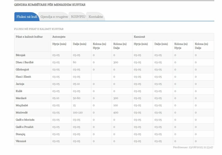 Sipas Qendrës Kombëtare për Menaxhimin Kufitar, pritjet për të dalë nga Kosova arrijnë deri në dy orë në pikën kufitare të Mutivodës, ndërsa te Dheu i Bardhë deri në një orë.