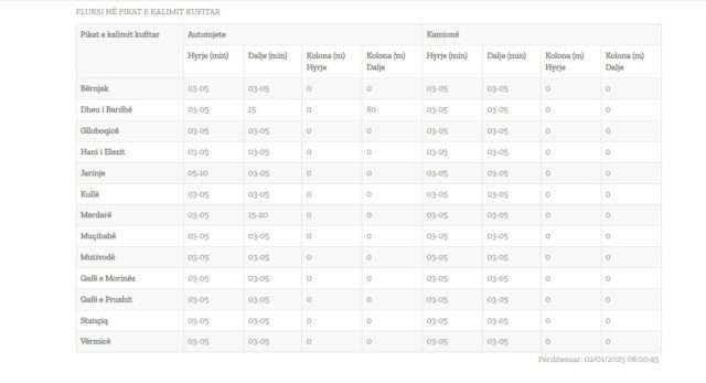 Qendra për Menaxhimin Kufitar bën të ditur se pritjet në pikat tjera kufitare janë deri në pesë minuta.