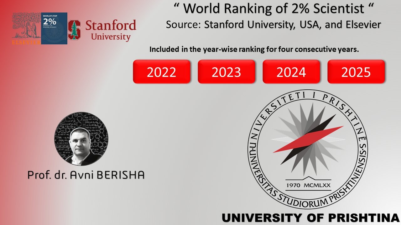 Profesori i Fakultetit të Shkencave Matematike-Natyrore, prof. Avni Berisha, ka hyrë në mesin e 2 për qind të shkencëtarëve më të cituar të botës në renditjen e publikuar nga Universiteti i Stanfordit, më 19 shtator 2025.